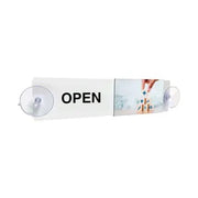 There are arrows on the back of the door slider sign to let you know which direction is Open and which is Closed. Two suction cups attach the sign slider to your door or store window. The base and the sliding portion of the door slider are printed on durable plastic that can be easily wiped clean.