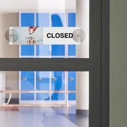 The Sliding Door Sign is an eye-catching display that lets your customers know if your business is open or closed.