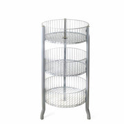 This three-tier display features three wire bins measuring 18" in diameter and 6.5"H each.