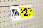 This Peg Arm Sign System displays pricing and signage from pegboard.
