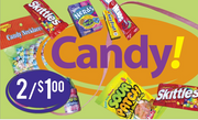 This candy window sign works great for special promotions in your deli, convenience store, or supermarket.