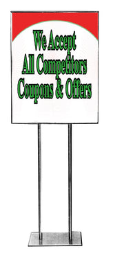 This competitor floor stand- stanchion signs informs customers. Great for all supermarket & retail stores.