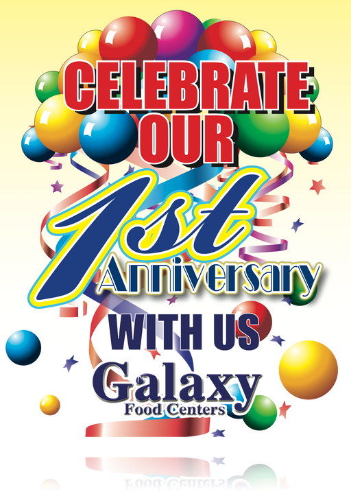 View full detailsGalaxy Food Center Anniversary Sale Hanging Signs-Ceiling Dangler- 22 W x 28 H