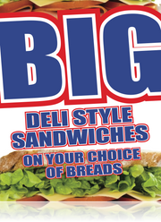 Deli Sandwiches Window Sign or Wall Poster-36"W x 48"H