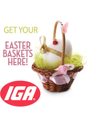 IGA Easter Baskets Countertop Easel Sign will help increase sales in your retail stores or supermarket displays.