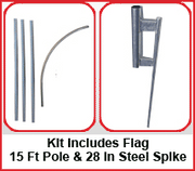 Flag will stand about 16ft high with the pole kit. The flag itself is about 11.5ft tall and 2.5ft wide.