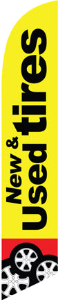 Feather Flag will stand about 16 ft high with the pole kit. This tire flag -Gets attention that may drive business into your store.