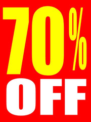 This 70% off point of purchase retail sign helps to reduce your inventory fast.