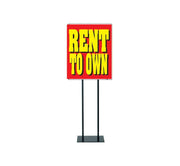 Rely your message with this Rent to Own poster. It can be used on windows, walls, hanging signs or fits into stanchion sign-floor stand sign holders.