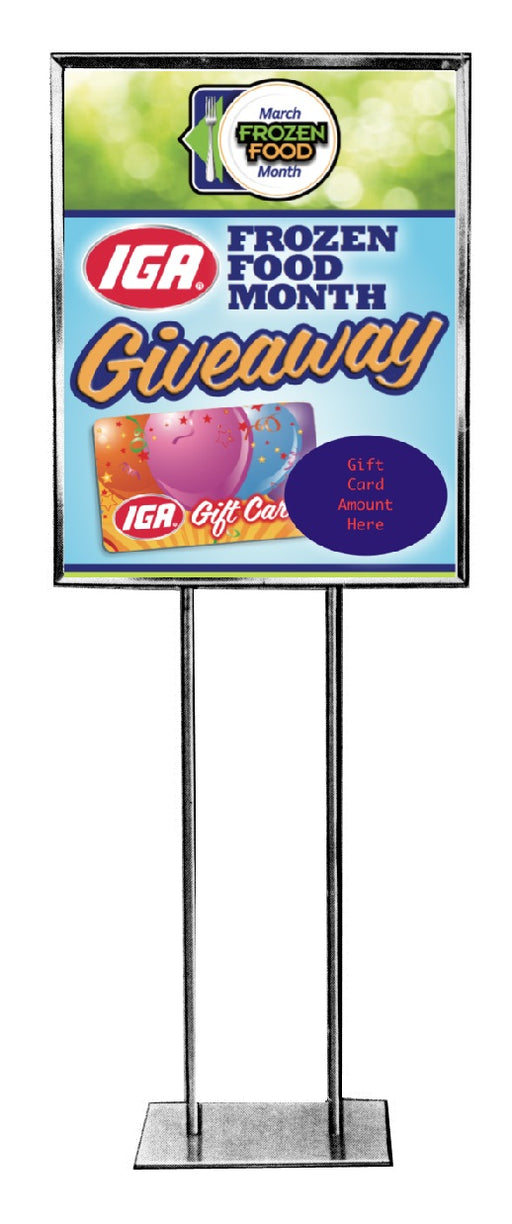 IGA Markets-Frozen Food Month Floor Stand Stanchion Sign for Supermarkets has high impact. Great way to inform your food store customers of your IG...