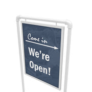 Industrial bulletin sign holder holds a traditional 22"W x 28"H card stock sign. This poster floor stand loads from the side with ease & has the ability to hold (2) 22x28 posters back-to-back or (1) 22 x28 printed on both sides.