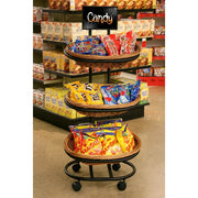 This moveable display fixture tiered baskets securely display your products. Load your merchandiser and signage before wheeling to the selling floor display area.