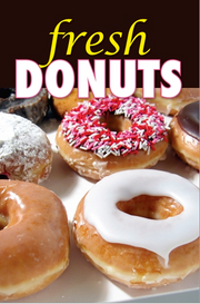This donuts window sign works great for special promotions in your bakery, convenience store, restaurant or supermarket.