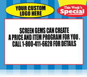 Full Custom- we can imprint your logo or create a weekly price/item program just for you. Just call for a quote.