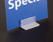 These Sign Holders with Permanent Adhesive-Counter-Top have gripper teeth that securely hold signs in either vertical (flag) or horizontal position. Adhesive base adheres to clean, flat surfaces like counter tops.