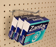 Inexpensive way to hang and display unlimited types of products vertically - just peel and stick.