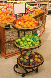 - Can be placed at the end of a fruit and vegetable aisle with apples and oranges. This will not only display the fruit you are selling but will add color to your aisle.