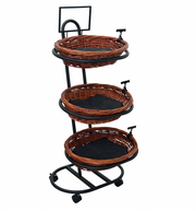 This Mobile Fixture has 3 round wicker baskets is easy to move throughout your store to use in high impulse sale areas.