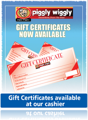 Boost Sales with this window sign to Sell more Piggly Wiggly store gift certificates.