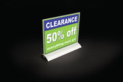 Whether it be an acrylic pocket, cardboard or plastic printed sign or even a chalkboard, the countertop sign holder sign holder is the most versatile and contemporary sign stand available.