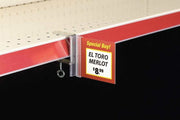 Universal “C” clamp design can be used on square edges of shelves, fixtures or just about anywhere throughout the store.