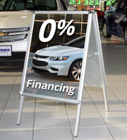 The A-frame sandwich board sign holder has 1.25" wide profiles and hold two 24" x 36" signs.