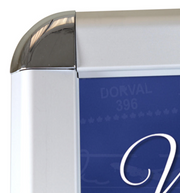 Rounded frame opens to accept graphics up to 1/16" thick and clamps shut with spring tension for a secure hold.