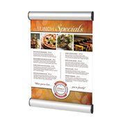 The sign is held in place with two snap open profiles. Simply snap the profiles open, insert your sign and then snap the clamps shut.