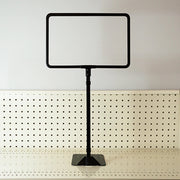 These metal frame sign holders are perfect for displaying signage throughout your retail store. Display your signs and promotions on product case stacks, counters, coffin cases, and on shelves. Adjustable stem height.