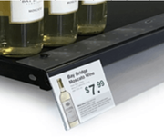 Great clear plastic label or sign holder for shelf edges on gondola store shelving or on wood trim of our wine, liquor, spirits and beer display shelving.