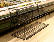 Great product for cross merchandising! Black adjustable cooler mount basket for upright or coffin coolers.
