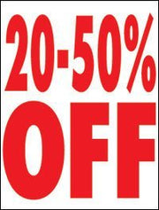 20-50% Off Countertop Easel Sign has high impact. Use with our other percentage off signs for your retail store sale.