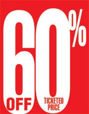 60% Off Countertop Easel Sign has high impact. Use with our other percentage off signs for your retail store sale. Place on your checkout counter-customer service area -display tabletops or other areas in customers' view.
