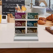 The Acrylic 6-Slot Gift Card Holder with Snap Base is a great way to display gift cards on countertops.