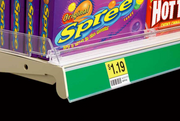 Contoured angled front fence are a simple & easy to use system that merchandises and organizes your shelving at supermarkets, convenience, dollar, auto parts stores, and mass merchants.