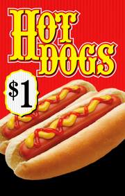 This Hot Dog stanchion sign fits standard floor stands sign holders at your food store.