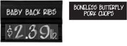 These item name inserts for your meat department track outside the case. Or The track insert set are easy to install into channel tags.
