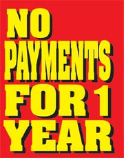 These No Payments for 1 Year standard posters can be used on windows, walls, hanging signs & fits into stanchion sign-floor stand sign holders.