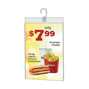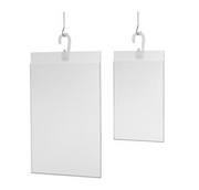 Our Hanging Acrylic Poster Pocket is a clear sign holder with a hanging hook that lets you hang your sign. The thick acrylic pocket is shatter-resistant and easy to clean, while the heavy-duty hook lets you hang your sign from a ceiling, over a wire, on a shelf and more. A U-shaped bend at the bottom of the poster pocket prevents your sign from slipping out. Sign changes are fast and easy. Just slide your art through the side of the acrylic holder. Holds an 8.5" x 11" sign, photo or poster.