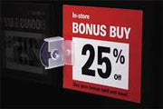 Holds signs on glass surfaces such as windows or cooler doors. Great for ever-changing sale signs on cooler doors.